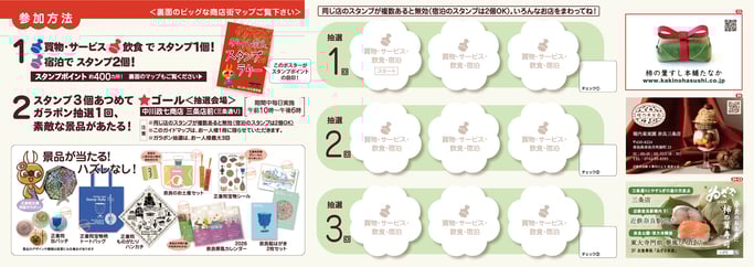 ※同じ店のスタンプが複数あると無効(宿泊のスタンプは2個OK)