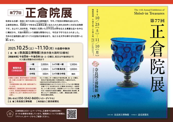 観覧当日、日時指定枠に空きがある場合にのみ、奈良国立博物館内の特設窓口でのチケット販売があります。(発券料200円/枚が必要)