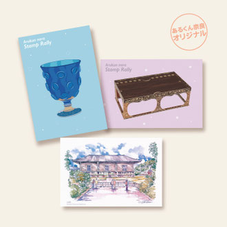 今年出陳の「瑠璃坏」「木画紫檀双六局」と瑞々しい水彩で描かれた「奈良ひとまち百景のはがき」のいずれかの組み合わせ、2枚1組です。