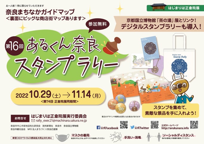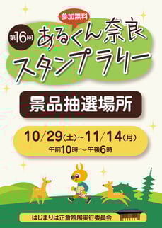 スタンプラリー期間中は、ゴール/景品抽選場所(近鉄奈良駅行基広場・JR奈良駅2F改札前/土日祝のみ)でも入手ができます。