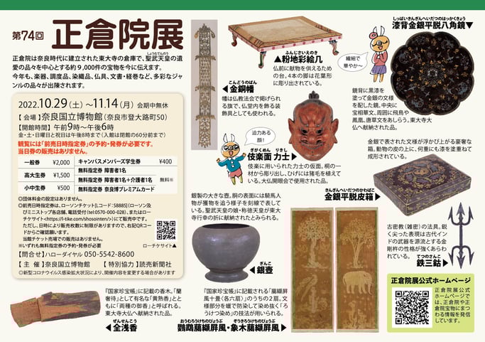 正倉院展の観覧には、「前売日時指定券」の予約・発券が必要です。