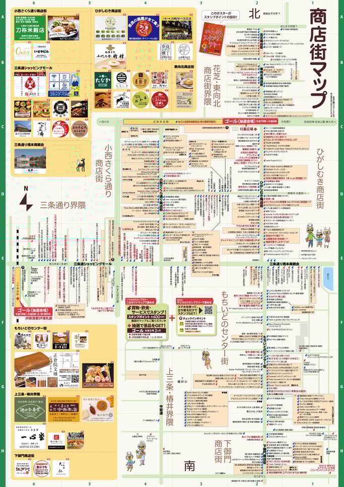 近鉄奈良駅〜JR奈良駅周辺の約420余店舗にて、「買物・サービス・飲食」でスタンプがもらえる