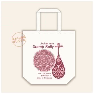 今年のトートバッグのモチーフは、「平螺鈿背円鏡」と「楓蘇芳染螺鈿槽琵琶」の組み合わせです。